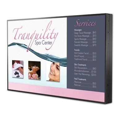 Our Video Wall panels make your digital signage easy to implement, configure and operate. Video Wall displays support an extensive array of connectivity options, including VGA, DVI, HDMI, composite, and supports RS-232C serial connectivity for multiple display control. Ranging from 11mm to 5.7mm, the ultra-thin bezels make these displays appear nearly seamless for video walls consisting of up to 250 displays. Our displays feature advanced cooling technologies that allow for reliable operation 24 hours a day, 7 days a week. Signs also feature built in 5 watt speakers. Our Video Wall software allows you to change, reposition and resize content in real time from a single PC. No matter where you display these screens you can be assured people will be captivated by your message.